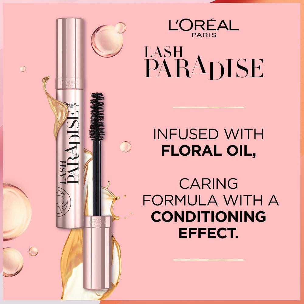 Discover the washable mascara Lash Paradise by L'Oréal Paris - for intense volume and spectacular length. Pleasant to apply, suited for sensitive eyes!