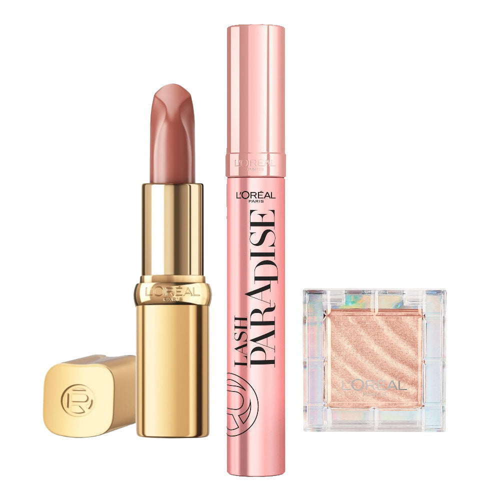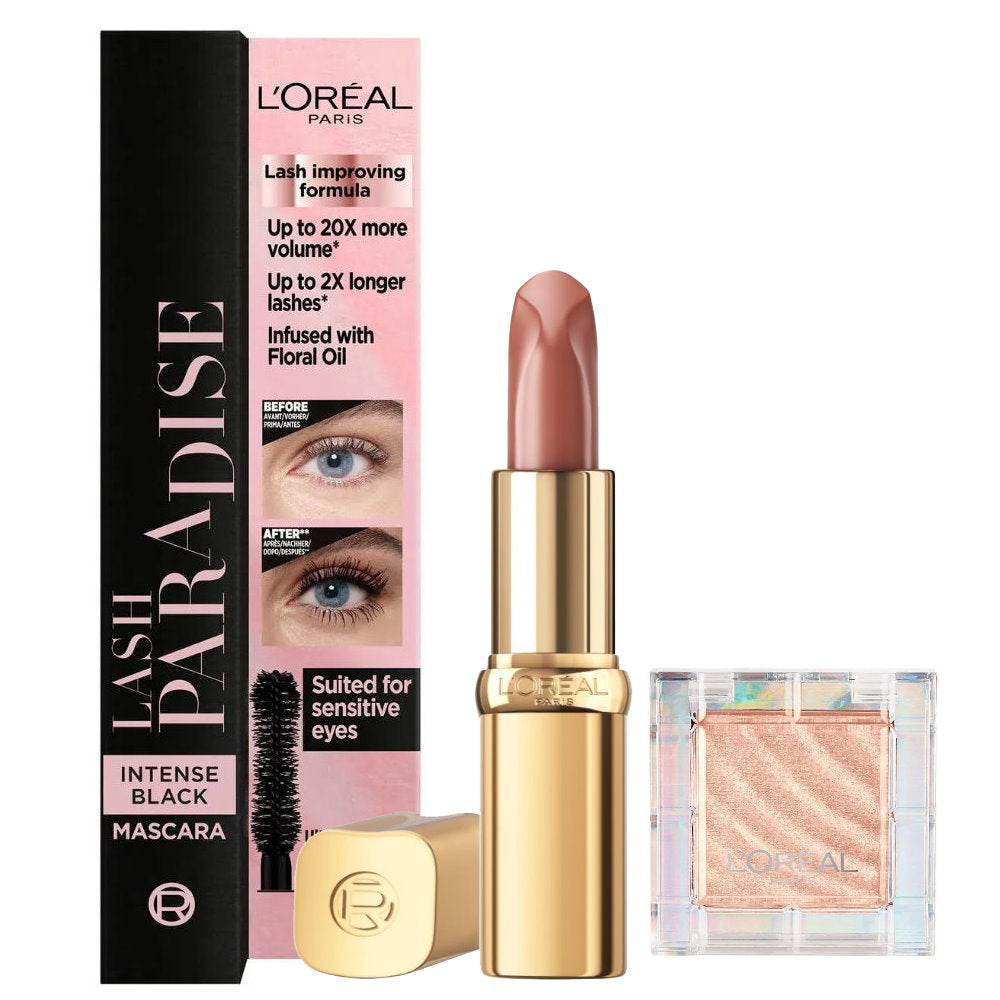 3pk SET L'Oreal Lash Paradise Mascara Intense Black, Color Riche Satin Lipstick 520 and Shadow 17 Don't Stop Me