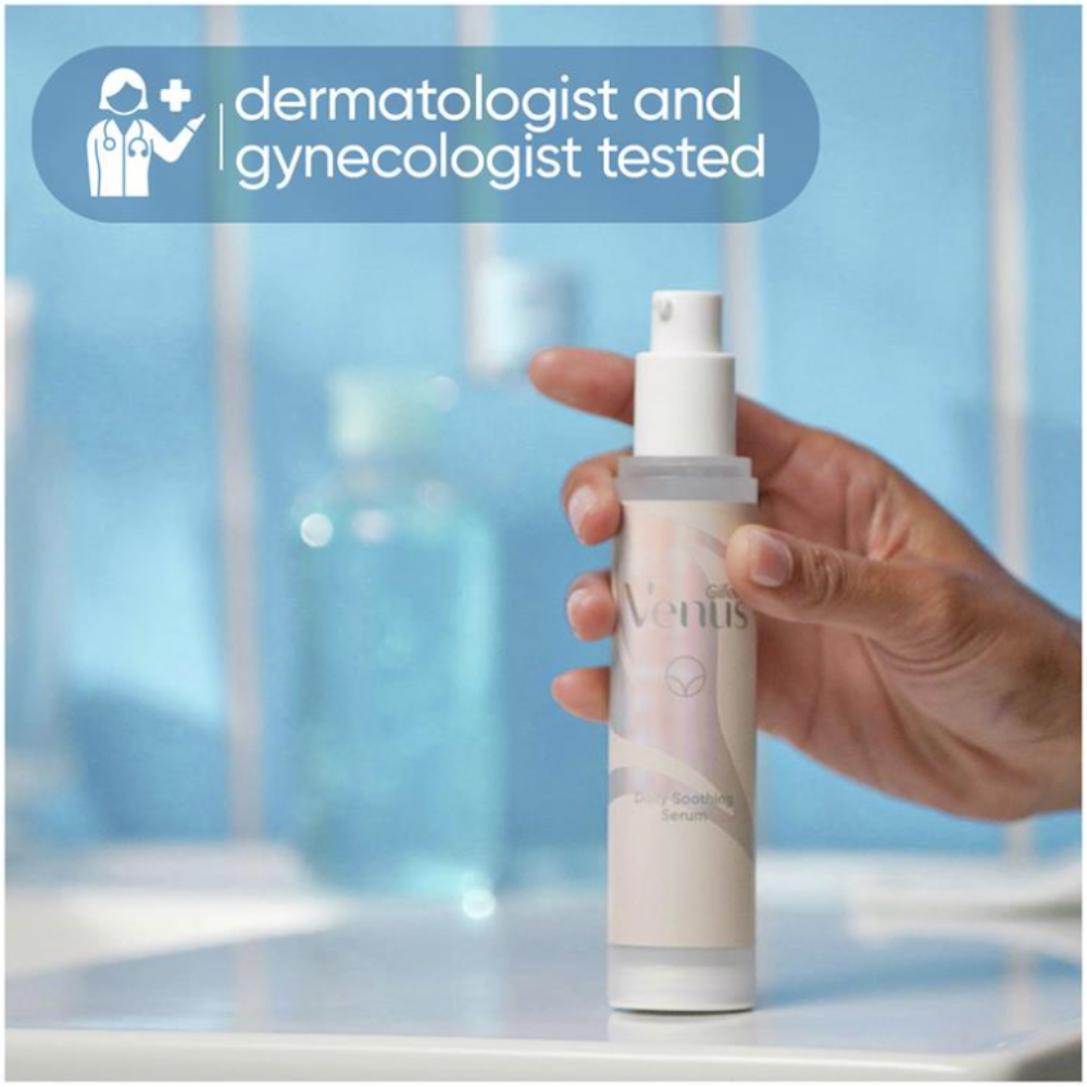 Gillette Venus Daily Soothing Serum helps provide soothing moisture to help reduce itch after your shave. Don't settle for bumps, ingrowns and itch.* (*itch due to dry skin). Dermatologist and gynaecologist tested.