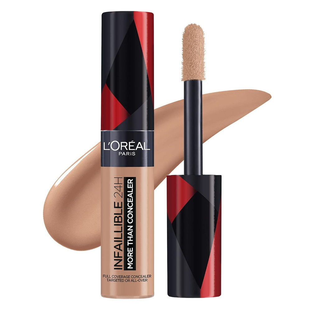 Infallible More Than Concealer comes in 18 shades so you can find the perfect one to brighten, correct, contour & highlight. Use it in targeted areas or full face application, with a jumbo doe foot applicator, this is MORE THAN just a concealer. With a high pigment elastic formula giving you the ultimate full coverage finish with a totally weightless feel. This ultra long-wear formula has an undetectable finish that doesn't crease or settle into fine lines.