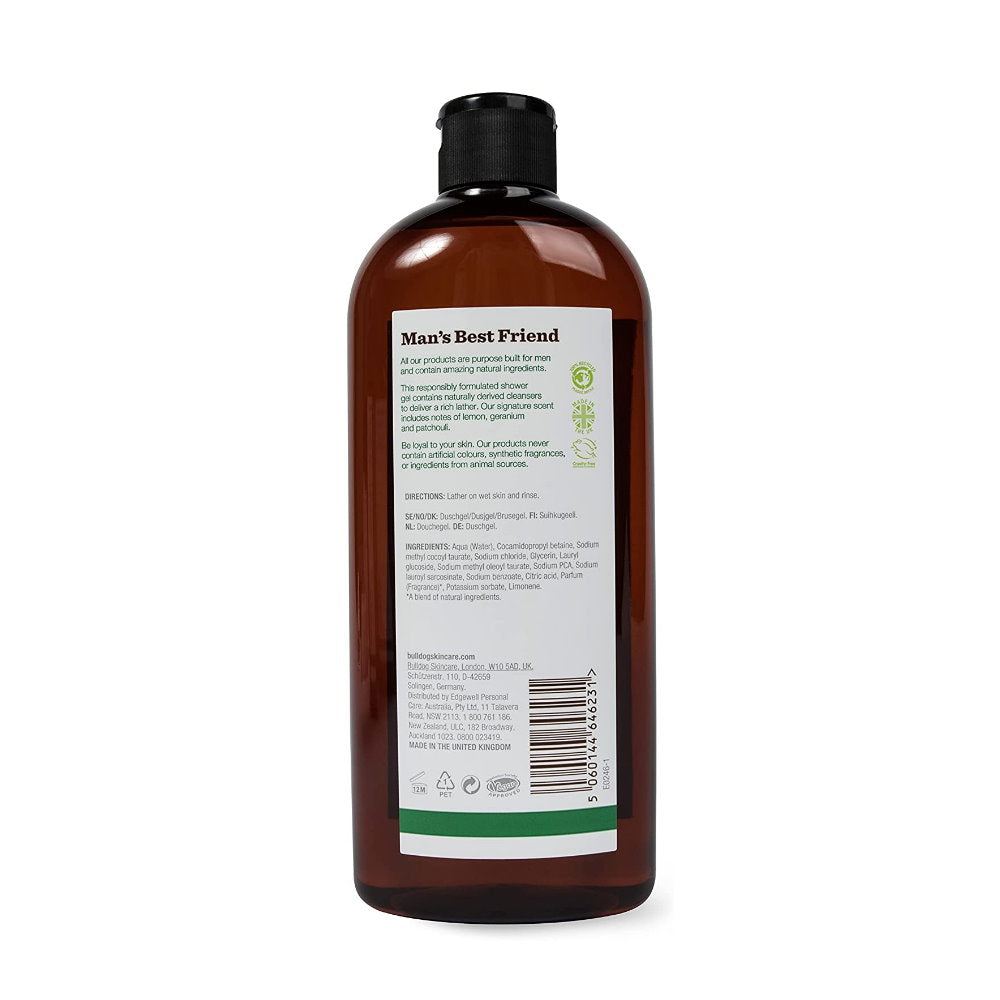 This refreshing shower gel for men is designed to deliver a rich lather to gently cleanse your skin leaving you feeling refreshed. Bulldog's shower gel for dry and normal skin is made using naturally derived cleansers and 100% natural fragrance with our signature scent including notes of lemon, geranium, and patchouli.