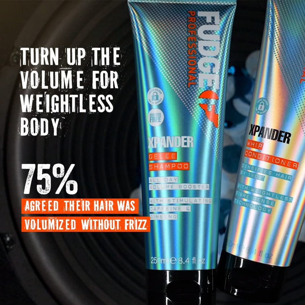 Fudge Xpander volumises hair, instantly densifying it by 180% with weightless fibre-dense technology. Recommended for fine, limp hair that wants to feel thicker and healthier. 250ml