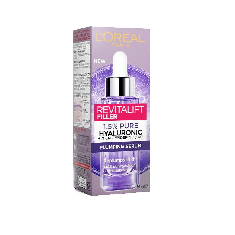 This serum been specifically developed to effectively hydrate and plump skin. Its advanced formula is quick to absorb and delivers a non-greasy finish. The Revitalift Filler facial serum contains a scientifically formulated blend of 3 forms of pure Hyaluronic Acid to help retain skin's own moisture: Now enriched with Micro-Epidermic Hyaluronic Acid, 50X smaller than Macro Hyaluronic Acid.